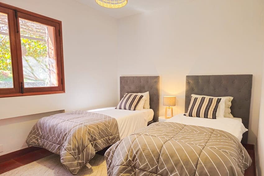 Das Hauptschlafzimmer verfügt über ein gemütliches Doppelbett und einen großen Kleiderschrank. Ein weiteres Schlafzimmer ist mit einem privaten Balkon und zwei Einzelbetten ausgestattet, die – wenn gewünscht – zusammengestellt werden können. Das letzte Schlafzimmer ist ebenfalls mit 2 Einzelbetten ausgestattet.