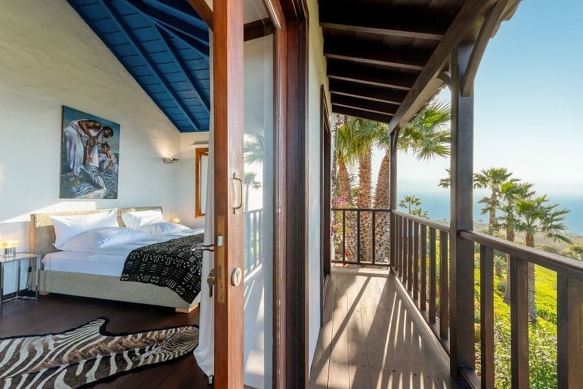 Desde las dos habitaciones dobles de la planta baja, la vista sobre el terreno desciende hasta el valle. Los lechos de color petróleo (180 cm x 200 cm con colchones separados de 90 cm x 200 cm) tienen excelentes colchones separados y sólo se oye el canto de los pájaros de los pinos cercanos. Sin duda, el baño también es «très chic»: la plata martillada de Marruecos y el mármol decorativo completan el lujoso carácter de Villa Botánico. En la planta superior hay una amplia suite con una cama doble (2 colchones separados de 90 cm x 200 cm).