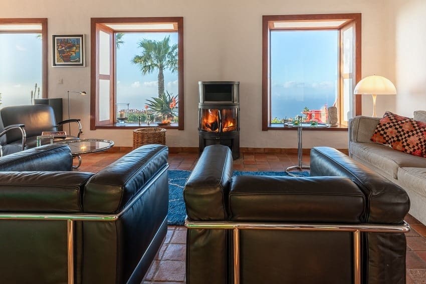 El interior de la villa se caracteriza por una escritura moderna. En este caso, se valora el máximo nivel de confort hasta el más mínimo detalle. Los grandes ventanales permiten la entrada de mucha luz en las grandes estancias y la discreta combinación de colores crea un cálido juego de colores. La chimenea crepita cómodamente y sin duda contribuye a la sensación de bienestar. El gusto se ha demostrado en el equipamiento, numerosos muebles de diseño Bauhaus, sillones Le Courbusier, etc. que deleitan la vista de todo amante de los diseños exquisitos. Las habitaciones se calientan con un sistema de calefacción central de gas (incluido del 01.11. – 31.03.), la sala de estar se calienta con una estufa de chimenea.