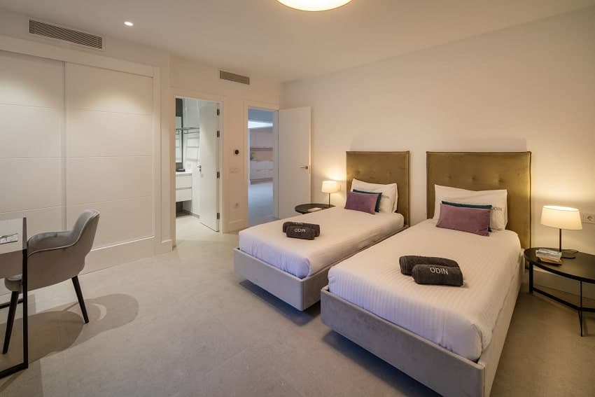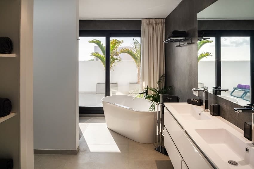 La Villa Odin 1 en Puerto Calero impresiona por su elegante y moderno diseño, y gracias a su orientación sur recibe la luz del sol durante todo el día. Los seis dormitorios, cómodos y distribuidos en dos plantas, cuentan todos con baño privado y aire acondicionado individual. El dormitorio principal eleva el confort con un vestidor y una bañera exenta.