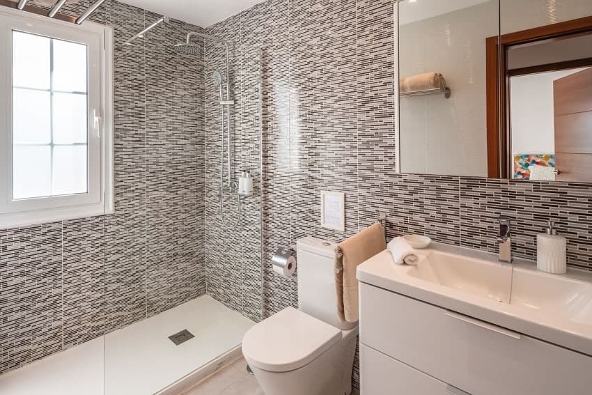 The terrace is partially covered by a pergola, so you can spend plenty of time outside, even on particularly hot days. The stylishly designed heatable private pool (additional costs) provides a refreshing way to cool off. Furthermore, there are sun loungers, an outdoor shower, a barbecue and a parking area. In the back part of the garden, there is a small children’s playground – perfect for smaller guests.