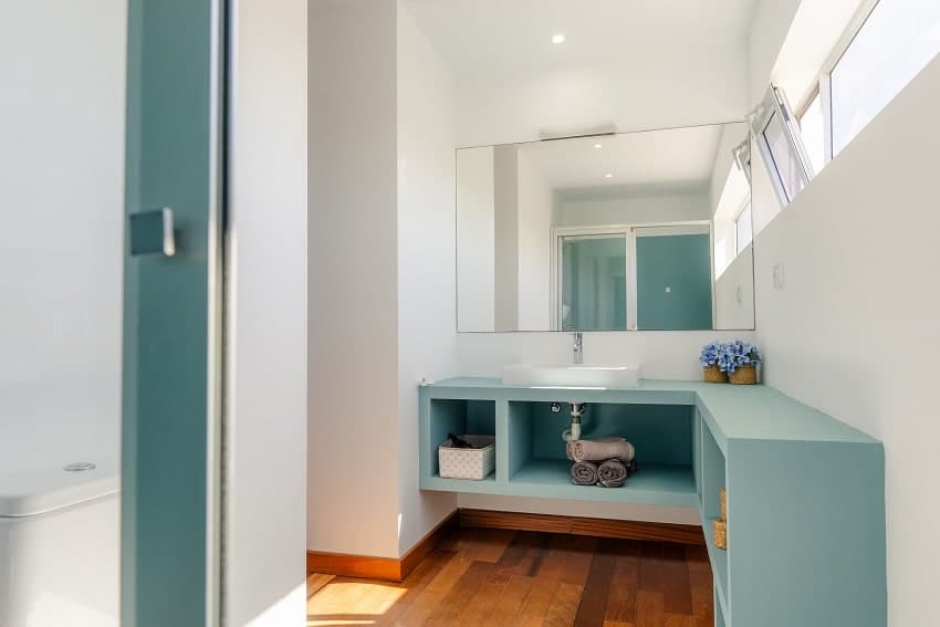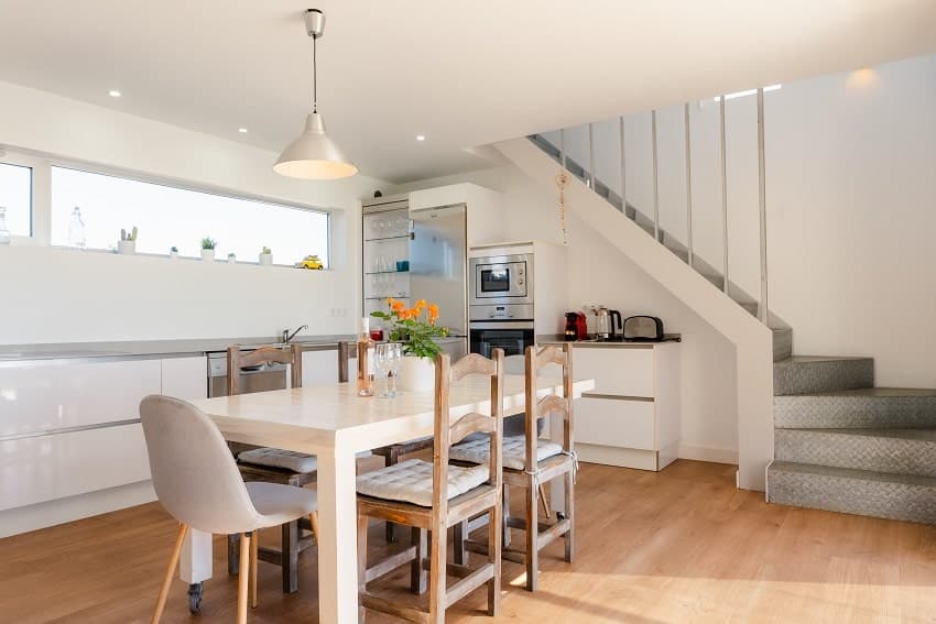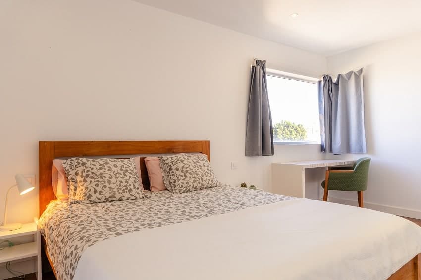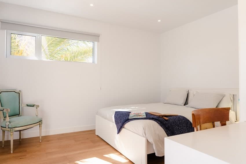 The bedrooms are spread over two levels. On the ground floor, there are two bright bedrooms with tasteful design as well as a modern bathroom. Meanwhile, the upper floor features the master bedroom with an en-suite bathroom. It offers a private retreat with lovely views of the surrounding landscape.