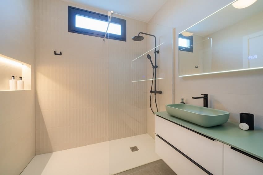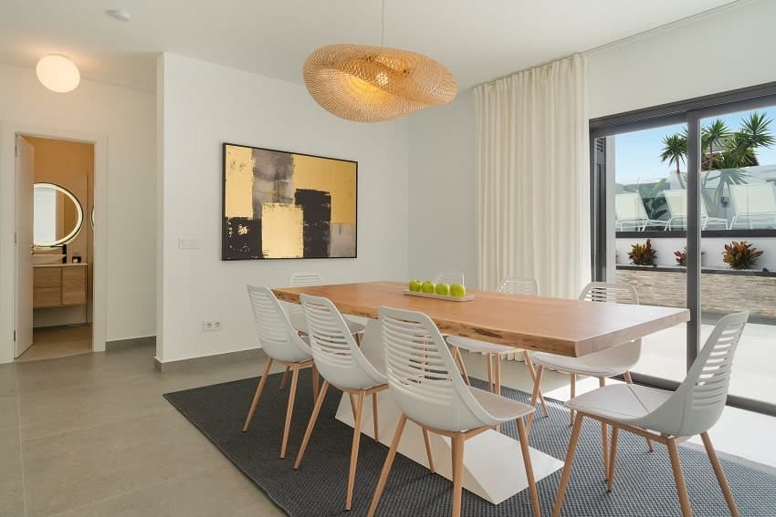On the ground floor, you will find the spacious dining area with direct access to the pool terrace. The master bedroom with en-suite bathroom, as well as another bedroom, are also located on this level.